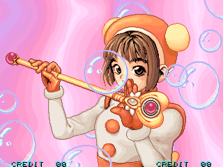 Depois, temos o conceito da transformação. A velha Oume se transforma na sua versão rejuvenescida; conserva os próprios movimentos, mas eles se tornam mais potentes e céleres. Como velhinha, tudo que ela podia fazer de perturbador era, você adivinhou, tacar sua dentadura em linha reta. Como jovem ela emite bolas de fogo respeitáveis no lugar. Todo outro personagem terá sua própria transformação (já indicamos qual a do odiento Kintaro há alguns parágrafos). O que pode encher o saco é que há loadtimes de 5 a 10 segundos por transformação no PSX…