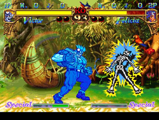 Detalhes interessantes como “gradação de dano” podem ser sentidos e ajudam a tapar alguns dos buracos da gameplay: se o adversário o atingir com uma bola de fogo a queima roupa, o dano é muito maior do que se a magia atravessasse a tela inteira antes de tocar seu personagem. E quanto mais cheia sua barra de life, maior, proporcionalmente, será o estrago, numa forma de tentar promover justiça entre os fracos que a Capcom encontrou.