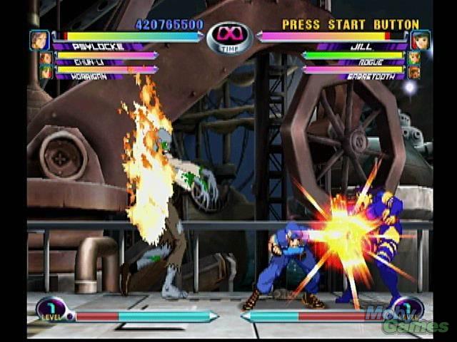 Tirando Dragon Ball Z Budokai, MvC2 chegou com o título de “game de luta com mais personagens em todos os tempos”, deixando até títulos emblemáticos como King of Fighters no chinelo: 60! Contudo, ainda que Budokai vença MvC2 em quantidade, jamais o fará em qualidade. Os personagens do jogo da Capcom são, como posso dizer, bem-feitos e pensados (para não dizer que já existiam muito antes do game), realmente diferentes uns dos outros. A seleção de lutadores do time da Capcom varia da linhagem mais obscura, contendo, entre outros e outras, uma sósia de Chapeuzinho Vermelho de Darkstalkers (Anita), às maiores marcas registradas da companhia, tais quais os já citados Ryu, Akuma (Street Fighter) e Jill dos Resident Evils 1&3. Do lado da Marvel, o selo de quadrinhos mais famoso do mundo ao lado da DC Comics, entes fictícios que vão do Duenve Verde a Cable (o filho de Scott do futuro) e Homem-Aranha, passando por pelo menos um representante de quase qualquer franquia dentro do universo Marvel!