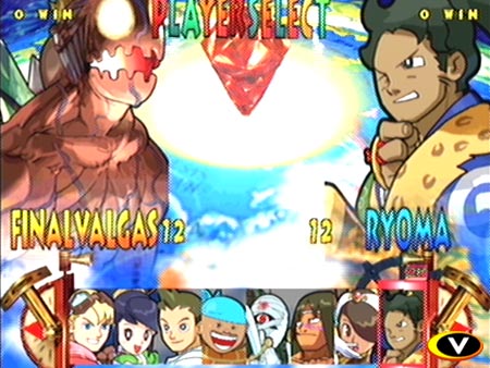 Vamos apresentar os personagens, tanto os básicos quanto os escondidos, sem os quais muito do charme da empreitada estaria perdido (ainda bem que não estamos revisando Marvel VS Capcom 2, ou o texto ficaria com o triplo do tamanho!): 1) Falcon (Fokken no JP) – é o “Ryu” do jogo. Personagem muito equilibrado com bons movimentos na forma original e um Power Mode decente; 2) Ayame – a “Chun Li” do título. Realmente rápida! Sua forma nº 1 não vale a pena se o atributo almejado é força física. O negócio é usar sua agilidade para reunir as 3 pedras e utilizar seu Power Mode; 3) Wang-tang – esse cara com nome de suco instantâneo é mais um do grupo dos “lutadores equilibrados”, recomendável tanto para veteranos quanto para novatos; 4) Gunrock – como o nome indica, é um grandão lento que usa seu corpo avantajado como forma de ataque por si só! Espere para ver seu Power Mode… É praticamente o Coisa do Quarteto Fantástico! Com L, ele rolará atrás do antagonista incessantemente… 5) Galuda – um índio de quem não consigo pensar nada de notável para falar; 6) Jack, The Slayer – um dos personagens de jogos de luta mais estranhos já vistos. Lembra um pouco Voldo de SoulCalibur (um misto de Jason de Sexta-Feira 13 e Sheik de Zelda); 7) Rouge – a segunda mulher deste elenco, quase tão rápida quanto Ayame e decididamente mais forte. Seu Power Mode é a Deusa do Fogo!; 8) Ryoma – quase um clone de Wang-tang, mas se diferencia por manejar uma katana; [SPOILER] Personagens secretos: 9) o sub-boss; 10) Valgas, final boss (primeira forma). A forma Power do último chefão pode ser destravada também, só que exclusivamente para o Versus mode. Este último é simplesmente considerado o mais apelão dos dois jogos Power Stone de Dreamcast. A life bar de qualquer um será devorada em questão de segundos.
