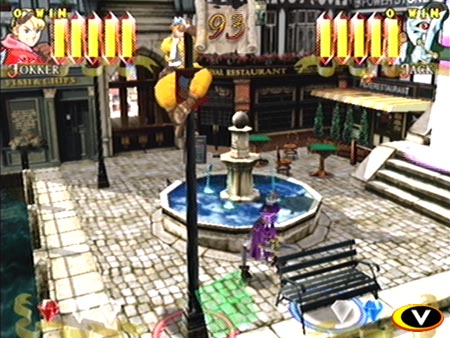 ODreamcast já chegou no mercado arrasando com títulos para todos os gostos. Mas a cobertura deliciosa deste bolo de chocolate da Sega não foi nenhum jogo da companhia; foi da sempre-presente-nos-momentos-difíceis Capcom. E ao contrário do que muitos seriam levados a crer, não me refiro a nenhum capítulo da série “Marvel VS”, que é inegavelmente brilhante e tudo o mais, mas que não se caracteriza exatamente por ser “original”, já que apenas segue a fórmula dos antigos clássicos de Saturn, expandindo-a. O fighting que roubou a cena de verdade na estréia do Dreamcast se chama Power Stone, onde a tridimensionalidade não é só aparência!