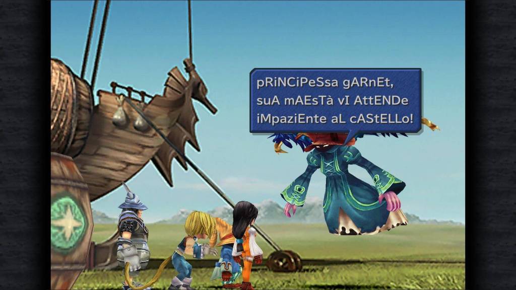 Se parece que eu já desanquei o jogo o suficiente, a realidade é que eu nem comentei seu aspecto mais bisonho, doloroso e diabólico. Parece  que você precisa jogar – “ler”, “assistir” – muito até poder controlar efetivamente o que seu bando fará num mundo em tese aberto à exploração. FF9 é quase um RPG linear por metade ou mais de sua trama. Parecem ações predeterminadas, se assemelha mais a um filme do que a qualquer outra coisa. Uma animação da Disney, tendo em vista os bonecos super deformed escrotos. Final Fantasy 16 já tinha sido feito antes, e ninguém notou! Mas o mais desagradável é que a plot não pega de jeito nenhum… Ademais, o minigame ou side quest mais adorado de FFVIII regressa numa forma remendada e degradada chamada Tetra Master, sem ensinar-se propriamente como são as novas regras. Pior ainda, existe um trecho da storyline que exige vencer partidas desses card games, ao contrário de FF8, que relegou o passatempo à parte 100% discricionária. Outro minigame envolve chocobos e, para ser honesto, é o melhor envolvendo essas criaturas de que eu tenho notícia, valendo bastante a pena (lembro que em FF Tactics também souberam aproveitá-los).