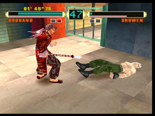 O brilho do Arcade mode reside em ter de suar a camisa e arregaçar as próprias mangas até abrir os hidden characters (se bem que a luta contra o último chefe é bizarramente malfeita e apressada!). Dentre eles, Vincet e Yuffie, mais dois de FF7, não por acaso o “garoto” e a garota que protagonizam o modo que vamos dissecar abaixo, o Quest. O terceiro secreto chama-se Django e, a despeito de não ser nenhum presidente da república, vai agradar, no layout e nas técnicas, os apreciadores de Final Fantasy que estavam esperando uma participação de alguma besta quadrúpede como Red XIII. Tudo bem que controlar os carinhas de FF7 ao vivo e em (mais) cores é agradável e catártico, mas o desafio em Ehrgeiz deixa muito a desejar. Esse é o preço que se paga por simplificar excessivamente o sistema de jogo, incluindo uma tecla dedicada aos specials: mais fácil de mergulhar na mecânica, mais fácil ainda de enjoar completamente dela. Não vai ser nenhum evento de outro planeta se você zerar de primeira, sem perder uma lutinha sequer para a CPU…