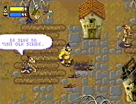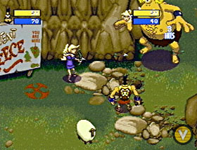 Mas para um jogo de humor pretensioso, o desafio é bem altinho. Os inimigos sobram na tela e infligem dano quase sem pausas; healing items (que em Herc’s Adventures tomam a forma de, olha só que coisa, churrasquinho grego!) são espaçados em demasia; o mesmo poder-se-ia dizer dos save points; fora que é preciso pagar em ouro pelo direito de salvar seu jogo mais uma vez (que diferença para outros títulos de PSOne mais amigáveis nesse quesito, como Symphony of the Night!). As fontes de regeneração, únicos lugares aquáticos não-empestados por peixes demoníacos, infelizmente são raríssimas e parecem se localizar nos piores sítios possíveis, nunca logo após uma batalha muito dura, ou então ao menos antes de uma! Não terminou ainda a lista de poréns: toda vez que morre, o jogador tem de encarar os perigos do Submundo de Hades antes de voltar à superfície. Só pela grande duração do jogo, ele já merece ser considerado “destinado aos experts”!