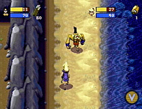 O terreno é o mais das vezes homogêneo enquanto o jogador cruza várias cidades e sítios resolvendo quests, o que pode dar a impressão para um passante ocasional (sua mãe entrando e saindo do quarto de 5 em 5 minutos pra mandar você ir estudar, quem sabe) de que o controlador nunca faz nenhum progresso substancial. Claro que algumas regiões têm um look mais particular, como as porções gélidas ao norte, mas basicamente estar-se-á diante dos mesmos platôs rochosos, passagens pantanosas, escarpas montanhosas e praias. Graficamente, há um problema de perspectiva, já que a visão é a famosa ¾, de cima mas com uma leve inclinação diagonal. A percepção de profundidade dos objetos é malfeita. Quando seu personagem salta para trás, no que deveria haver um afastamento dele em relação ao primeiro plano (uma forma de iludir os espectadores é encolhendo o corpo em movimento), o que se percebe é tão-somente o boneco se deslocando para cima, como se subisse uma escada no mesmo plano bidimensional. Não que isso gere qualquer problema na gameplay, só enfeia mais as coisas.