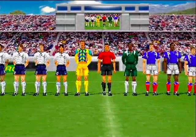 Os gráficos estão no patamar “bom”, abaixo das maiores referências da época no sistema, como Final Fantasy VII e Soul Edge, mas chegando quase aos limites do hardware em termos de “retratar jogos de futebol”. Em síntese, há jogadores altos, jogadores baixos, jogadores carecas, jogadores magros e, o mais importante, jogadores reconhecíveis! Em 1997 isso já era muito. Paul Gascoigne, com seu cabelo descolorido à Euro 96, é discernível a uma milha de distância, no ataque inglês. Ravanelli é o outro da “turma dos grisalhos” famosíssimo da empreitada, jogando pela Itália (veremos mais adiante que nos ISS eles são conhecidos por alcunhas sem qualquer relação com seus nomes próprios). O motion capture da época não podia gerar gestos mais convincentes do que os do player poligonal que faz as vezes de R. Baggio. Portanto, é um jogo dos anos 90 em que os times possuem individualidades ao invés de 11 clones – louvável!