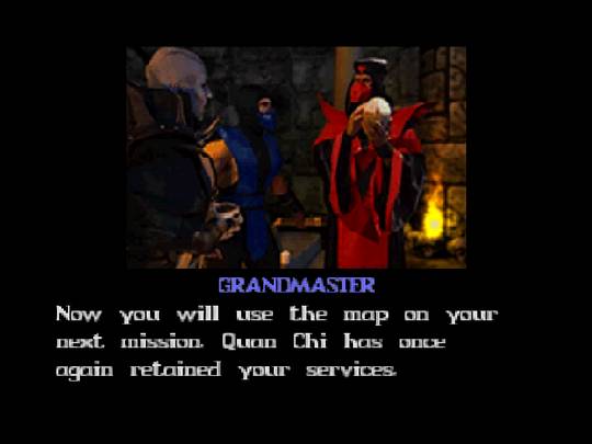 Devo reconhecer que a narrativa, cheia de texto e imagens entre as fases, é mais profunda do que as estórias para um simples platformer da era 32/64-bit costumavam ser. Não podia ser diferente, com “Mitologias” como subtítulo… Quem estrela esse título é o chamado “Sub-Zero mais antigo” ou “número 1”, que supostamente morreu entre MK1 e MK2 – o outro é um clone (rapaz, não me peça mais detalhes disso agora, pelo nosso bem!). Mas seria pedir demais que esse envolvimento maior com o contexto de um personagem carismático de MK compensasse os controles insultantes!