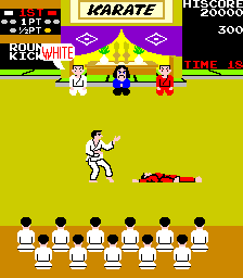 Karate Champ, uma merda hoje em dia, teve seus anos de glória. Teve seus anos de febre nos Arcades e também consoles domésticos e até computadores de Steve Jobs. Em suma, foi, numa ocasião no espaço e no tempo, inovador. Um game contendo a premissa de um brawler que tenha saído 3 anos antes do debute da série Street Fighter merece no mínimo ser comentado! E este foi o primeiro jogo temático de briga que ganhou a atenção dos norte-americanos, e suspeito que nem só por aparecer numa cena de Ferris Bueller’s Day Off (Curtindo a Vida Adoidado)! Até as cores dos kimonos (gi) dos dois protagonistas foram, de certa forma, um presságio da onda capconiana futura…