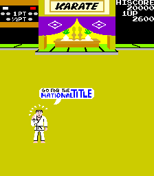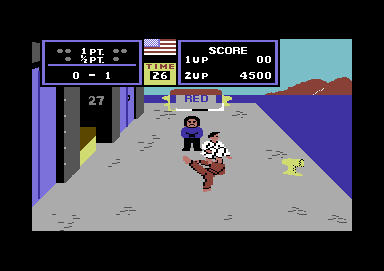 Tentando arrematar as explicações acerca da gameplay (desastrosa, eu sei), eu diria que há 4 passos que devem ser seguidos para se tornar o campeão mundial virtual de karate: 1) chegue bem perto do oponente, para tentar ludibriar a eternamente problemática ferramenta de detecção de colisões; 2) aperte um botão, o outro botão ou, na dúvida de qual vai produzir o melhor efeito, os dois botões juntos!; 3) evite executar um mortal para trás; 4) procure não segurar nenhum botão por tempo demais (seu karateka vai congelar na posição, e surpreendentemente durante esse lapso de tempo o adversário conseguirá encaixar golpes relativamente sem problemas)!