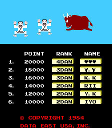 Essa é a prova de que collision detection, diversão e o número 5 (vide uma das legendas de fotos) não precisavam existir ainda para que fosse lançado esse ícone dos games, ainda hoje lembrado devido ao incrível pioneirismo. Fiquei na dúvida se puxava a orelha severamente ou se procurava ressaltar os pontos positivos de obra tão precoce; no fim, decidi por fazer um pouco dos dois e depois agradecer: kudos à Data East por inaugurar as experimentações no gênero e, obviamente, por nos fazer rir de montão! Ryu, Ken, Guile, Sub-Zero, Scorpion, Liu Kang, Terry Bogard, Jacky Bryant e qualquer outra figurinha carimbada do ramo devem sua existência aos toscos White Guy e Red Guy, que se expuseram sem medo num jogo pra lá de horrível; mas, enfim, por um desses milagres da vida, memorável!