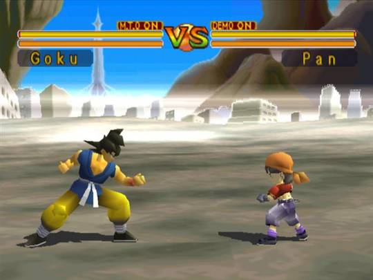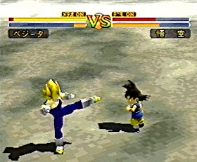 Falando nos ditos-cujos que podem ser melhorados no Build-Up, é a primeira vez que os personagens de Dragon Ball aparecem 100% poligonizados num jogo. Exatamente por isso não se deve esperar muito, mas é notável que o artwork foi preservado ao máximo em relação ao mangá. As arenas é que desapontam de forma acachapante. São alguns dos piores “terrenos baldios” que já vi num jogo de luta, com péssimo uso das cores e nenhuma interação com elementos do cenário, como rochas, árvores, água… Será que também preciso citar o fato de que há 3 versões de Trunks com diferenças gráficas irrelevantes entre elas, além de 5 Gokus (sem contar as fusões, que são mais 3, todas entre Goku e Vegeta!), para um total de 19 lutadores? Isso sim é um character development furado!
