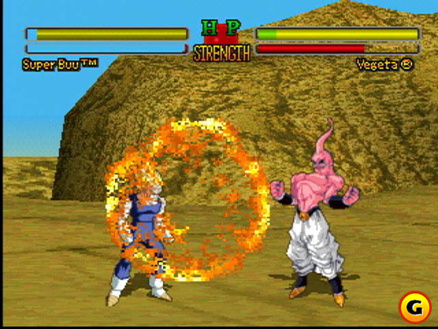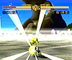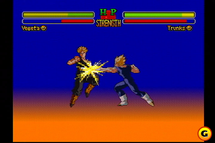 É, ainda, ridículo como táticas repetitivas e insípidas (“insolentes”, como diz o Vegeta) – o melhor exemplo: soltar um projétil atrás do outro, bem afastado do rival – podem funcionar, mesmo se aplicadas por um novato contra um expert no jogo, haja vista o retardo da vítima do choque com uma bola de energia até se recuperar do impacto! (Fora que DESDE QUANDO um Kame Hame Ha é do tamanho dum MORANGO? Erraram feio na proporção das magias…) A verdade é que o único fator que proíbe esse tipo de vitória fácil por mais vezes e adiciona alguma estratégia é o esvaziamento contumaz da barra inferior, que mede o ki. Sem nenhum ki, o personagem fica estafado e vulnerável por alguns segundos, o equivalente a um “stunt” num jogo da SNK. Por isso o botão triângulo tem importância considerável nos embates e o ritmo das lutas deve ser (ainda mais) quebrado pensando nos “pit stops” energéticos que cada brigador precisa fazer se quiser soltar ataques avassaladores depois.