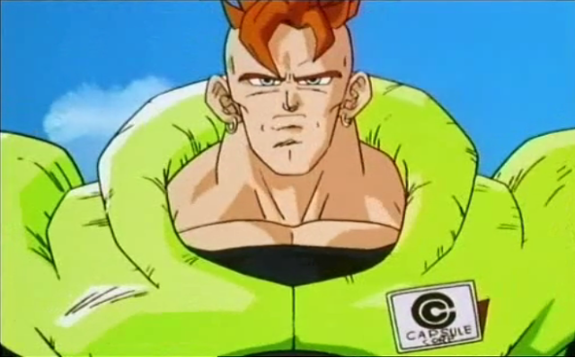 …desculpa, quase me esqueço de apresentar o duelista da esquerda: “fui criado para adorar pássaros e destruir Goku!” Andróide 16