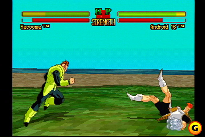As imagens sem o “G” no canto inferior direito não são do jogo, mas tomei a liberdade de apresentar, ao longo da resenha, alguns dos carismáticos combatentes de UB22! Este é Recoome, gorila que quase assassinou o pequeno Gohan em Namekusei. A cena da esquerda foi censurada no Brasil!