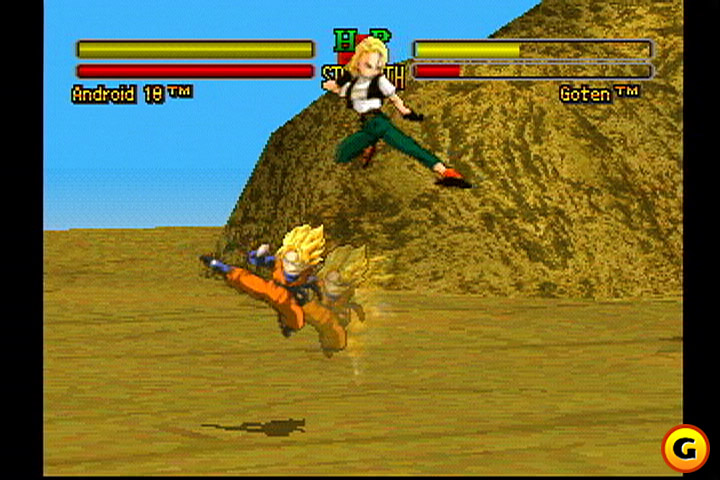 Mas chega de prosódia, e esclareçamos o porquê de um lançamento tão tardio para o 32-bit da Sony: em 1995, no primeiro ano de vida do aparelho, a Bandai, insatisfeita com “somente” os milhõezinhos angariados juntamente ao público de Super Famicom (mediante DBZ fighters de regulares a ótimos), iniciou sua jornada poligonal (ou parcialmente poligonal, pois apenas os cenários são texturizados com polígonos, e ainda assim em resoluções hoje pífias) com “mais do mesmo”, isto é, a galera do anime mais manjado de todos os tempos quebrando o pau sem muita frescura. Como nessa época, apesar de já ter sido concluído no Japão, o anime era desconhecido do público ocidental, não havia o menor sentido em tentar conquistar novos fãs baseado em estratégias de marketing e era melhor deixar pra lá. Bizarro é que o Reino Unido tenha recebido cópias do jogo em 1996… Eis que muito tempo depois da sua obsolescência técnica o PlayStationOne ainda se mostrava muito popular entre os consumidores que não tinham (ou que também tinham) um PlayStation2, e a febre Dragon Ball já havia contaminado todas as nações do lado de cá do Atlântico (do lado de lá do Pacífico, diriam os olhos-puxados). Nada mais natural que a nova detentora dos direitos autorais para videogames da série (vinculados, em termos de desenho, aos estúdios da Toei, mas essa é outra história), a Infogrames/Atari – sucedendo a Bandai –, finalmente aproveitasse esse nicho de mercado subutilizado. Alguns chamariam de tática suja para levantar fundos se aproveitando da ingenuidade dos fãs, já que pouco ou nada do jogo foi retrabalhado com o objetivo de atender aos standards mais exigentes de 2003; mas fato é que o Ocidente ganhou um título de 1995 que antes só existia para ele em Japonês e mediante importação. Digamos que já àquele tempo o sistema de jogo de Dragon Ball Z: Ultimate Battle 22 não era de excelência, mas que na quase-década que se passou desde então o conceito por trás do produto envelheceu sobejamente…