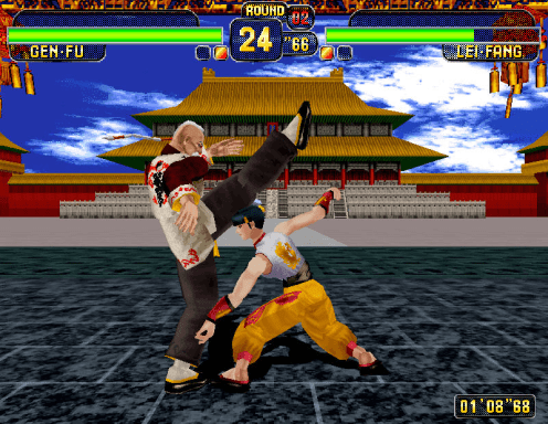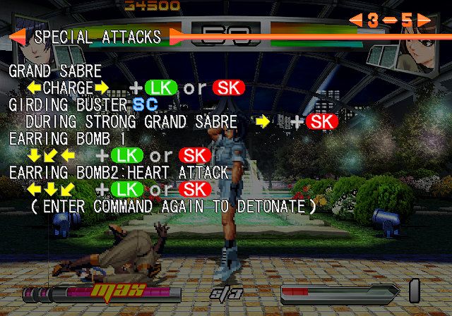 Indo além, temos os combos aéreos, uma maneira de evitar que o adversário tenha contato com o solo, reduzindo suas defesas. Ainda falta citar muita coisa, como o Perfect Guard (quando um block é feito no décimo de segundo exato e a perda de life é nula), o salto duplo, a corrida (pulsando duas vezes => ou <=), os Desperate Moves e até os Instant Kill (não estou falando de finishers, mas de ataques que no meio ou no comecinho dum combate podem liquidar a fatura de vez – e que por incrível que pareça NÃO ESTRAGAM o jogo, conforme veremos a seguir)! Uma delícia para os apreciadores moderados (digo isso porque não quero ninguém com olho roxo e bolhas nos dedos!).