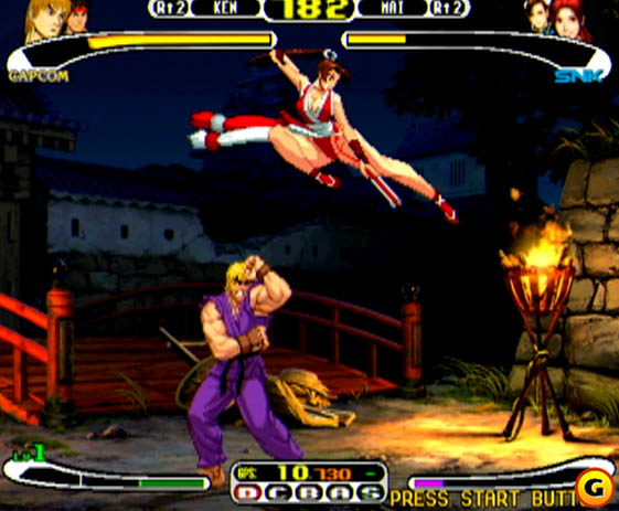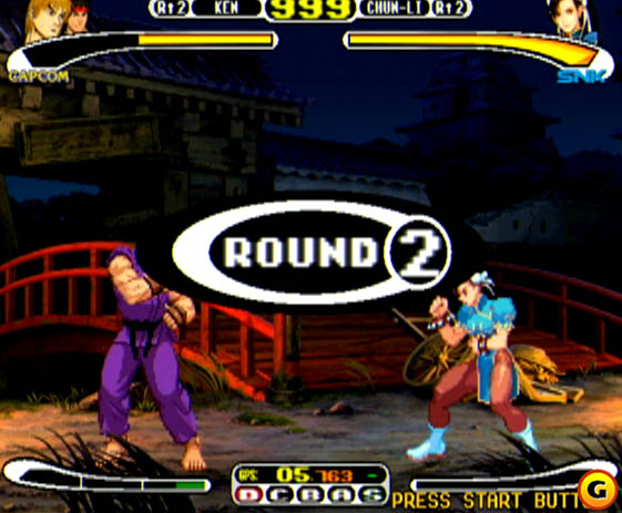 Desde que a Capcom estabeleceu seu crossover com a gigante dos quadrinhos Marvel Company, uma infatigável ala dos gamers importunava em fóruns da internet, em discussões acaloradas em revistas e em papos de boteco (hmm, mais razoável pensar em clubes de videogame sediados na sala de estar dos membros, e sem bebidas alcoólicas) com pedidos, especulações, rumores, anseios, esperanças e invectivas girando em torno do hipotético encontro ainda mais megalomaníaco e derrubador de fronteiras entre as maiores companhias fabricantes de jogos de luta no mundo, ou pelo menos no Japão: Capcom & SNK. Atendendo aos clamores da nação (não o Japão, mas a nação gamer, abstrata, diluída por toda a superfície terrestre), os homens-fortes de ambas as corporações (bem como suas caixas-fortes) iniciaram negociações e o sonho pôde virar realidade na virada do milênio. A SNK deu os primeiros passos, com um brilhante fighting portátil, SNK vs. Capcom: Match of The Millennium, para seu Neo Geo Pocket Colors. Depois, veio o bônus do acordo, um card game no mesmo periférico. Era chegada a rodada da Capcom, então eles resolveram apelar para a tecnologia de ponta do período e desenvolver Capcom vs. SNK na placa Naomi para Arcades. O primeiro port caseiro foi para o videogame do momento, o Sega Dreamcast, cujas capacidades 2D (com fundos de tela em 3D) já haviam sido exaustivamente testadas e ratificadas. O resultado? Um bom jogo – com adendos. O resultado é pelo menos questionável, a despeito do polimento técnico, dada a imensa expectativa depositada no encontro milenar, que acabou sendo frustrada pela percepção de que este não era lá um clássico imortal assim como Street Fighter II ou King of Fighters ‘96, mas um jogo comum. Comum por tudo, exceto que reúne personagens de dimensões paralelas que sempre quiseram ver frente a frente!