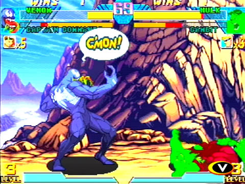 Como a moda no fim dos 90 era sistemas de jogo frenéticos que possibilitavam combos de mais de 100 hits com a maior simplicidade e super moves de dar inveja aos Guerreiros Z, a Capcom resolveu encarar o desafio de puxar um pouco as rédeas no setor e reimplementar combates com um odor “sépia” no suor dos lutadores (curiosamente, esse tom de cores mais sóbrias poderá ser notado na parte gráfica). A similitude com a trilogia Street Fighter Zero (Alpha) é grande. Os puristas do estilo Marvel vs. Capcom de ser devem descartar este título porque CvS não é um festival de apertar botões aleatórios. Não funciona assim!
