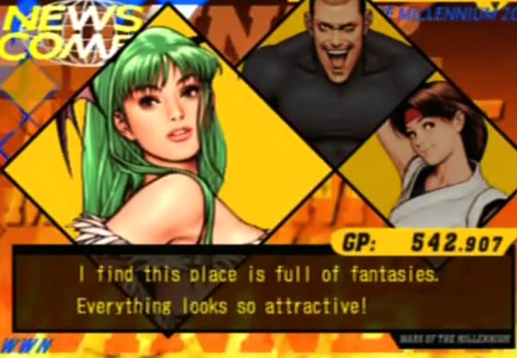 Como em MvC2, ganham-se pontos nas batalhas para gastá-los depois comprando segredinhos na “loja”. Personagens EX, novas cores para as roupas, lutadores efetivamente inéditos, novas arenas, etc., etc. O maior problema com esse sistema é que a franca maioria dos prêmios é EXTREMAMENTE cara e será necessário jogar MUITO até pisar na loja com peito estufado de comprador (e os donos de Dreamcast mal sabiam que eram felizes, vivendo antes do tempo das DLCs e microtransactions!). Uma alternativa a fim de encurtar o caminho é usar a compatibilidade existente entre este GD de Dream e o cartuchinho SNK vs. Capcom de NGPC, beneficiando-se com vários milhares de pontos. Ainda assim, a tarefa continua titânica. Exemplo: zerar o jogo uma vez dá em média 350, 400 pontos. EX characters custam em torno de 3 mil; EX Iori, especificamente, 7 mil! Prepare-se para meses muito intensos diante de seu Dreamcast e separe as bandagens para seus dedos e tendões…