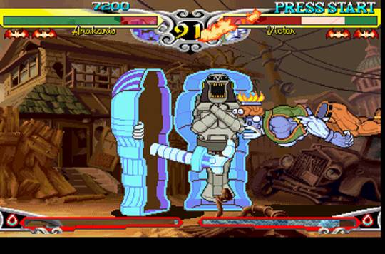 Devo ainda enaltecer os loadtimes irrisórios entre as lutas (à altura dos microtempos de Street Fighter Alpha 3, que será sempre o parâmetro em termos de jogos de porrada no videogame). Tem até uma opção para eliminar alguns quadros de animação e com isso minimizar ainda mais os carregamentos do CD, mas não vejo a necessidade, já que, como eu disse, eles já passam num piscar, e seria uma pena perder qualidade na imagem.