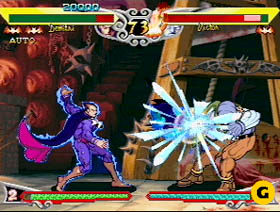 Os controles são, apenas, perfeitos (ok, perfeição existe sim). O mais proeminente nesse quesito é que o layout das 6 teclas voltou. Embora isso traga algumas mudanças em relação a CvS1, não me alongarei sobre este ponto, pois o que eu não gosto é desse racha entre “4-button” vs. “6-button” lovers, que já me encheu o saco durante os reviews de Luta para Dreamcast!