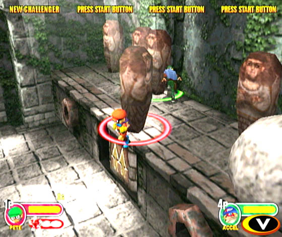 Adicione a essa metodologia de batalha esquisita bugigangas e quinquilharias mil espalhadas pela fase e tem-se um inferninho na tela da sua TV: jarras, caixas, postes (como os de pole dance), lareiras, máquinas de espinhos giratórios, lança-chamas, martelos e até uma espécie de bastão mágico do Goku que estica até os limites do palco são belezocas que podem ser usadas contra ou a favor de qualquer um!