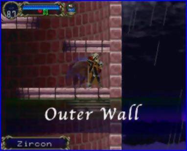 Castelos dentro de castelos… Vampiros vivendo dentro do mundo de assombração criado por outros vampiros… E não estamos num pesadelo de Alucard! – Numa trégua e aliança precária para conquistar o mundo dos homens, Vlad Tepes deu a outro poderoso vampiro alojamentos e aposentos suntuosos, talvez 5 estrelas, se não fossem apenas parte de um todo muito mais espetaculoso e que arruína a comparação. Corredores tão sombrios quanto elegantes, assim que se atravessa um estreito túnel cuja intenção é ser mesmo de difícil acesso, dão em calabouços tétricos, cheios de desalento, e pedras e grades cinzentas. O mais curioso é que bem no coração do lar deste outro vampiro haja um grande jardim, dando para a lua cheia que hoje está cor sangue; a fonte emana um líquido que combina com o céu, mas só criaturas versadas em feitiços de várias camadas conseguem enxergar essa façanha plástico-diabólica… Há toda a aparência de uma vila abandonada, que o Castelo do Demônio provavelmente engoliu da Romênia com sua mágica anti-cigana. Olrox está placidamente sentado quase ao fim do caminho.