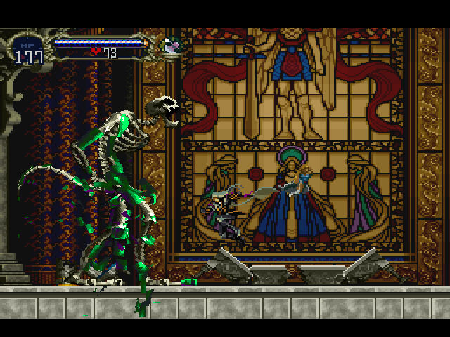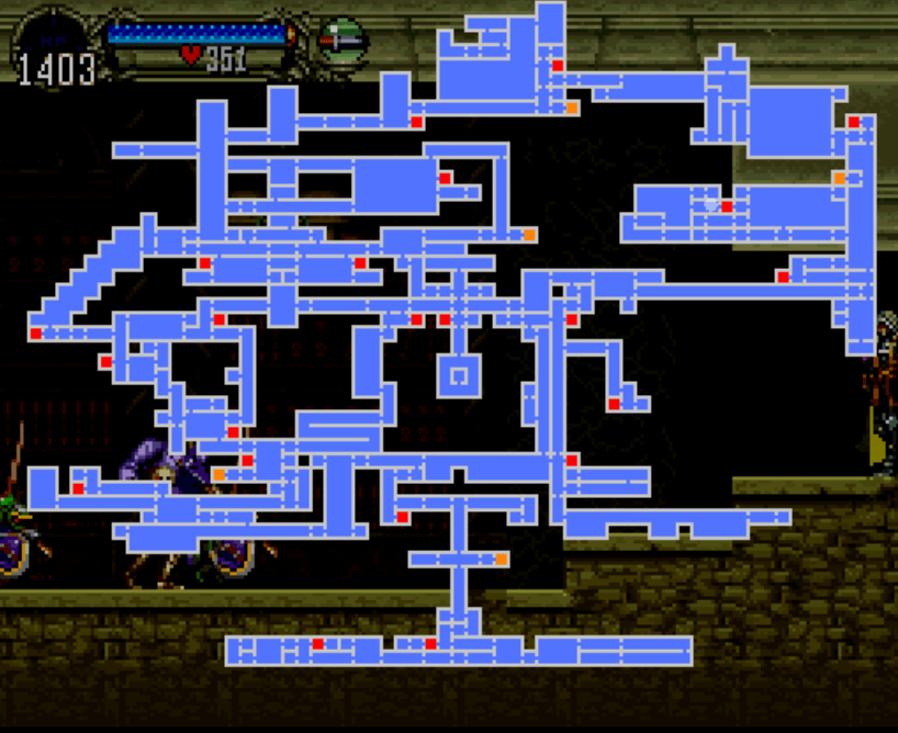 Essa particularidade – a de que, se SOTN ficar fácil demais, você poder desequipar suas melhores armas e se engajar em confrontos mais agonísticos, utilizando os próprios punhos e nada mais – dá uma sobrevida monstruosa e incontável quantitativamente, no caso do jogador ter se acoplado com perfeição ao estilo de jogo implementado por Igarashi. O único inconveniente de fato é não poder testar suas proezas novamente contra os chefões a não ser abrindo um novo jogo (exceção do último chefe). Perdoável, uma vez que em 1997 boss rush modes eram uma feature das mais infreqüentes (inclusive já presente no metroidvania seguinte do mestre Iga, Harmony of Dissonance)…