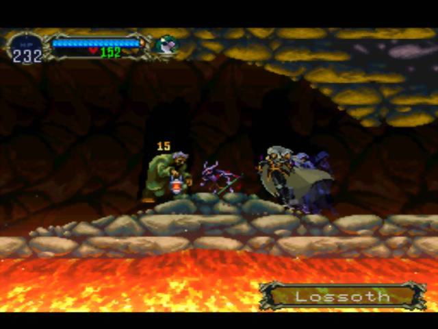 Dizer que não foi uma inclusão engenhosa da Konami seria mentir. Por exemplo: em poucos segundos, no vídeo de como derrotar Slogra & Gaibon com a máxima eficiência, o jogo “manda” você ir para a batalha com o leather shield e com a machadinha como secondary weapon. Poderia parecer que um escudo de couro não tem chance contra o elemento fogo, mas esse escudo é o suficiente para preservar Alucard de dano até contra a maior bola de fogo disparada pelo segundo, i.e., o gárgula. A propósito, sugere-se lidar primeiro com Slogra, a criatura ornitoforme que é carregada pelo demônio alado.