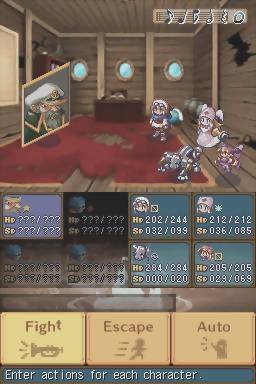 Para compensar a remoção dos aspectos táticos (em que quadrados na tela representando o posicionamento dos personagens alteravam o dano dos ataques, ou determinavam a possibilidade em si mesma de haver ataque no turno) a dificuldade no DS sofreu um revamp (o que não vejo comentado em nenhum review!), bem como a freqüência dos encontros aleatórios com inimigos se tornou muito mais acintosa. O que não vem a ser benesse adquirida a partir do remake, mas que existia desde antigamente, é a chance de gravar seu progresso a qualquer instante “off-battle”, uma coisa que não pode ser superestimada em RPGs…