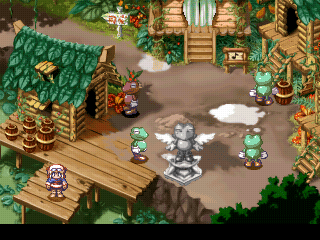 Admito que as dungeons são algumas das piores e mais estéreis que já vi num RolePlay: todas as telas e cômodos são quadrados gêmeos, exceto por um ou outro posicionamento de portas ou entradas. Pelo menos na versão DS há uma tela dedicada a um mapa que impede que o jogador se perca, o que era uma frustração adicional da versão PSOne. Posso dizer com convicção que o último jogo que Rhapsody me lembra é Breath of Fire III, que apresenta alguns dos puzzles mais elaborados e ilógicos de toda a seara dos J-RPGs – pela irritação de encarar quebra-cabeças dificílimos você não passará: é só achar o caminho, enfrentar as batalhas aleatórias conforme seu número de passos, futucar cômodos atrás de itens e demais segredos – se quiser – e por fim encarar o inimigo final!
