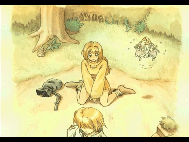 Sofrer fim de jogo é especialmente provável contra chefões e certos adversários com técnicas especiais como sleep,confusion e até instant death! A reta final do jogo é, outrossim, o único momento a envolver qualquer necessidade de grinding, pois Marjoly irá comer seu c* se você chegar alguns levels de experiência abaixo do exigido para fazer-lhe frente… Ainda assim, à entrada da dungeon do navio fantasma, por conta dum adversário aleatório que utilizou o feitiço sono eu vi a tela de game over a poucos passos de voltar a um terreno seguro e, graças ao fato de não ter salvo nos últimos 30 minutos, tive de repetir uma exaustiva parte da trama e rever várias cenas com diálogos, justamente porque a facilidade geral do jogo tinha me tornado arrogante e cético sobre a chance de algo assim drástico suceder comigo… Ouçam a voz da experiência, muchachos! Sobre o nível de dificuldade, só tenho a acrescentar que uma plot twist no fim do jogo e, portanto, nos finalmentes do enredo, além de fazê-lo lacrimejar, tornará seu time um tanto mais desfalcado, exigindo uma solução de improviso que todos julgavam improvável antes se configurar na tela!