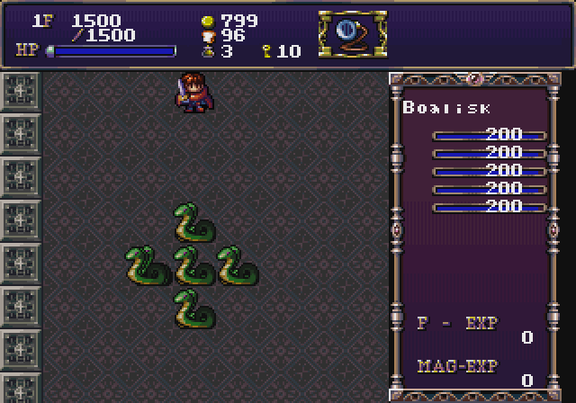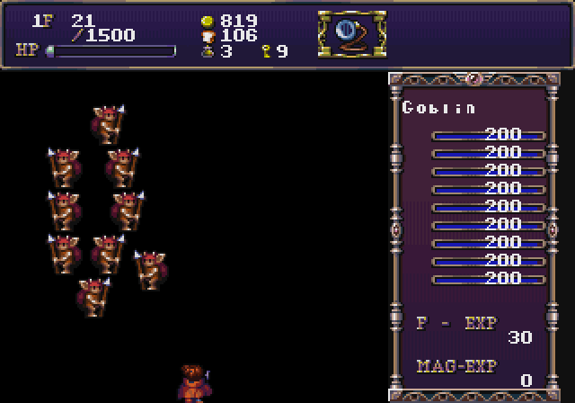 Sinceramente não fui muito adiante. Por mais que se afunde na mina o esquema não muda em nada. Acredito que eventualmente se enfrente alguma coisa como chefões, mas não tive paciência. É ruim, claro que nem tanto quanto Dragon Slayer I, mas não é nada que a Falcom deveria ter incluído numa coletânea de “clássicos”! Só porque um jogo é velho e empoeirado não significa que ele deve ser imortalizado com essa palavra tão banalizada!