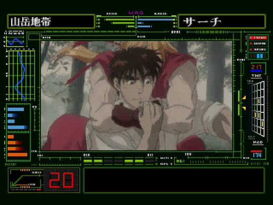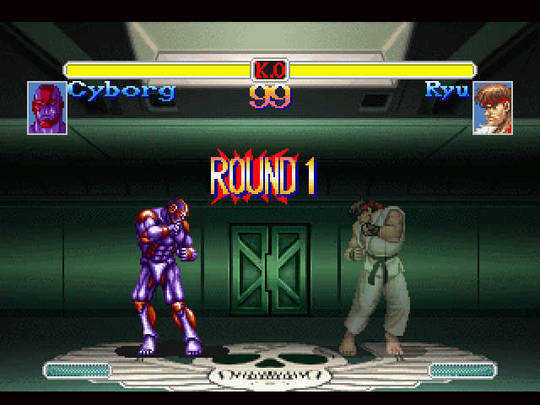 O negócio é observar e registrar detalhes. O mais incrível é que o jogador trabalha para Bison pela primeira vez, fazendo a apologia do “lado mal”! Dados como os golpes dos lutadores de rua precisam ser captados e analisados pelo avançado ciborgue da Shadaloo, que mais parece o Cell de Dragon Ball Z (acima)! O objetivo da máfia Shadaloo é o domínio do mundo. Há duas exceções para o esquema estático e paradão, quando o jogador assume o controle do ciborgue e realmente interfere na trama, lutando contra Ryu. Uma interface visual bem simples, com jogabilidade tão fluida quanto em Street 2 Turbo! Vencer Ryu sem ter observado propriamente como ele luta nas cenas prévias é uma missão quase impossível, porém não fará diferença, já que as cenas continuam e o jogo termina, por mais que o ciborgue perca o combate! O modo Versus dá alguma sobrevida ao produto, permitindo 1×1 contra amigos na pele dos mesmos personagens.