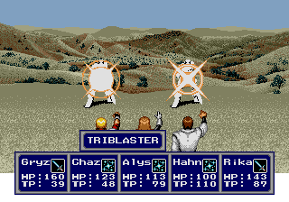 A maior inovação depois do aumento do número de personagens controláveis simultâneos é que magic points foram descartados. Esse pode ser considerado um marco divisório dos RPGs modernos (embora ainda se trate de um legítimo old school 2D) do ponto de vista do ritmo frenético de batalha: para o gamer contemporâneo pode até parecer lento ou soar comum, mas PS4 ditou a referência no gênero em 93-95 (tempo que demorou para se espalhar pelo Ocidente), obrigando os próximos RPGs a aumentarem a velocidade e acelerarem as batalhas em turno. Não é que Phantasy Star 1,2&3 e os primeiros Dragon Quest ou Final Fantasy fossem chatos em si, mas a sensação de modorra que hoje advém de jogá-los se dá justamente pelo contraste que sentimos entre os Role Playing Games de 1980-1995 e de 1995 pra cá! Mais do que apenas “aumentar a velocidade” gratuitamente, e de modo compulsório, este jogo possibilita a customização da velocidade; i.e., veteranos “calmos e serenos” poderão retomar a lentidão dos menus e das ações via opções. Um marco da “liberdade de usufruto do produto” que nos faz até pensar que a facada de CEM DÓLARES À ÉPOCA, pelo cartucho (quase o preço de um videogame), não era tão letal assim!